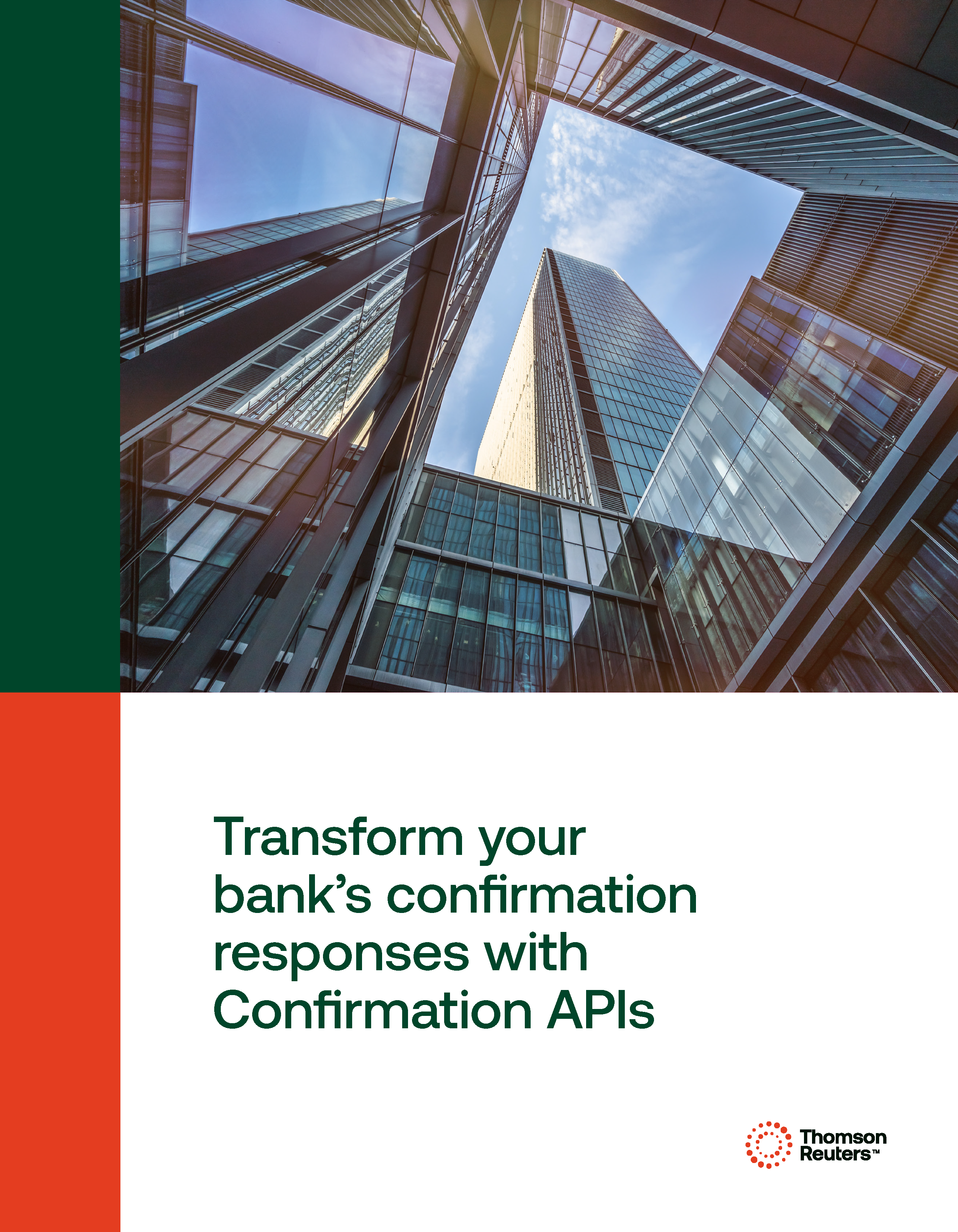 Our customized Thomson Reuters® Confirmation API solutions can automate your confirmation responses and data retrieval. That means you'll save time, increase data accuracy, and provide a superior customer experience. All while provided you with the same unparalleled level of security that you rely on.