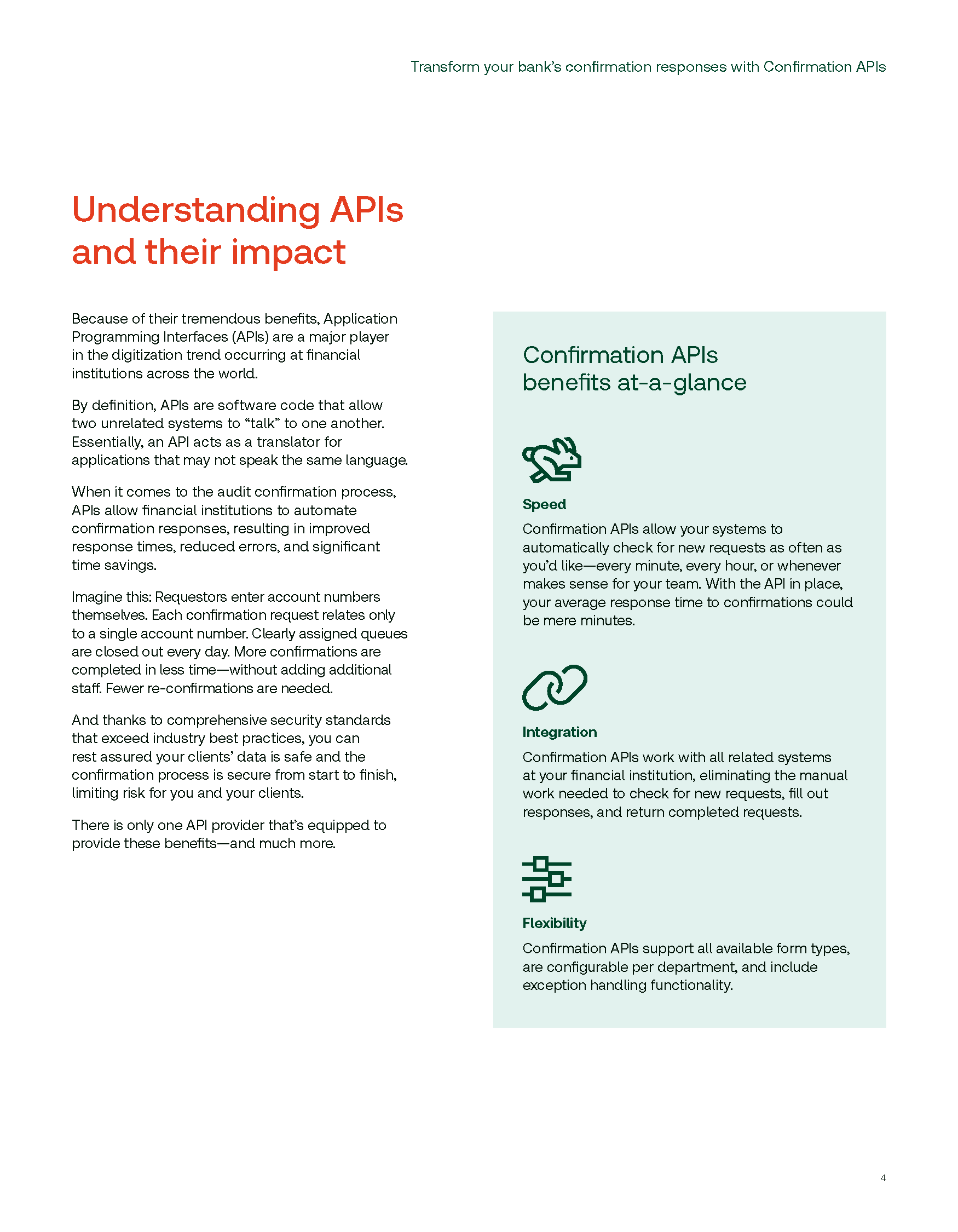 In fact, 4 of the top 5 US banks use our APIs and benefit from 76% of confirmations completed in one business day.